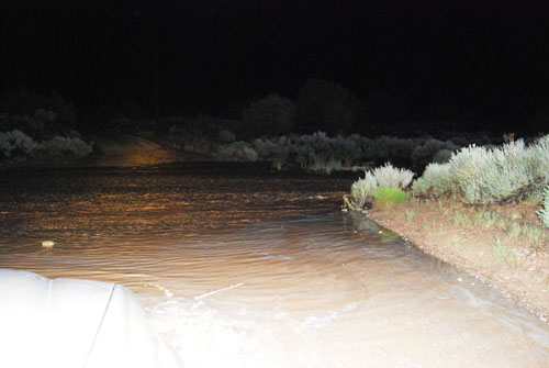 Finally we got some real rain! Thursday night we got 1.42 inches and last night we got over 1.30 inches which is a lot for Santa Fe considering our average precipitation is just over 14 inches for the whole year and we have been really short so far this year. The pumpkins are loving the rain and putting on some good growth with all this moisture which came from Hurricane Alex (although it is no longer a hurricane, just a tropical storm). Now if they could put on another 8 feet in the next week! LOL! In fact all of the veggie garden is growing like crazy with the rain and great temperatures. This picture is of our arroyo which flooded Thursday night. Haven’t seen it running like this in about 10 years!