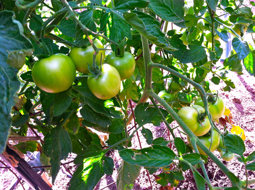 Wow! Freezing nights already. Where do yo live?! I hope here at 7000′ high we also can dodge a freeze which usually comes by Oct 5 until later. You can ripen green tomatoes INSIDE IF it is ABOVE 50-60 degrees AT NIGHT. They are not quite as good as vine ripened but still good enough to eat and make sauce. I made a mistake one year of storing tomatoes at the end of the season in an unheated building and they never ripened correctly. Now like you, I will bring them into the main house to finish ripening..