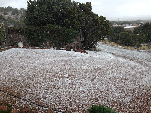 Wow! This weather is ugly. I for one am very tired of all this WIND and COLD COLD nights for us vegetable gardeners. Come on! I want to start planting in earnest! I can hardly believe it’s still getting below freezing at night. Looks like mother nature is going to take us right up to the May 15th date of ‘first frost free date’ before we get out of danger of freezes at night and maybe not even then. Unbelievable! We’re expected to get up to 1 foot of snow up in our local mountains but just a trace down here in Santa Fe. Still, Colorado has it worse tonight! What are all those giant pumpkin friends gonna do to protect their babies tonight?!