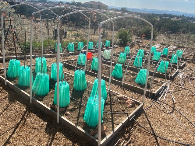 This is the earliest I have ever been able to put them outside. We always put them in Wall-of-Waters (green cylinders) to protect them from the chilly nites or if we have a late freeze. Now I’m dirt tired-time for a cocktail!