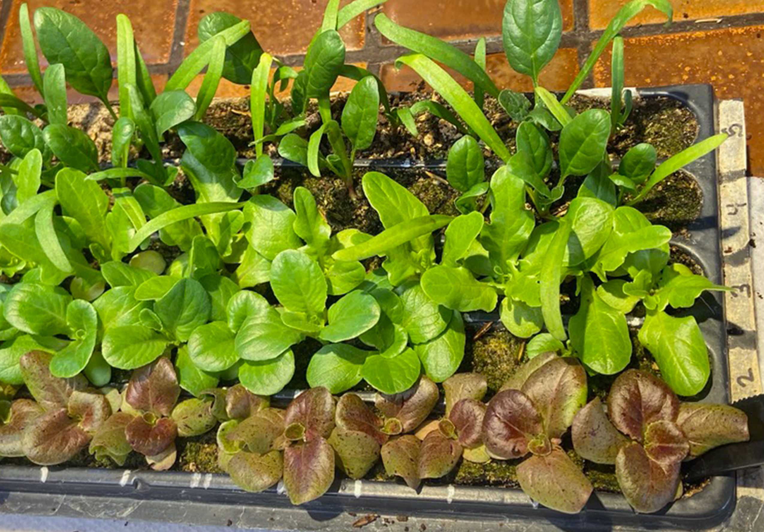 While the manure was cooking, I started lettuce/spinach seeds inside under lights (with no heat) in late January which took 3-4 weeks to get big enough to transplant in that top layer during which the soil temperature came down more as the manure mixture decomposed. Do not plant in the manure section but only the top compost/soil layer.