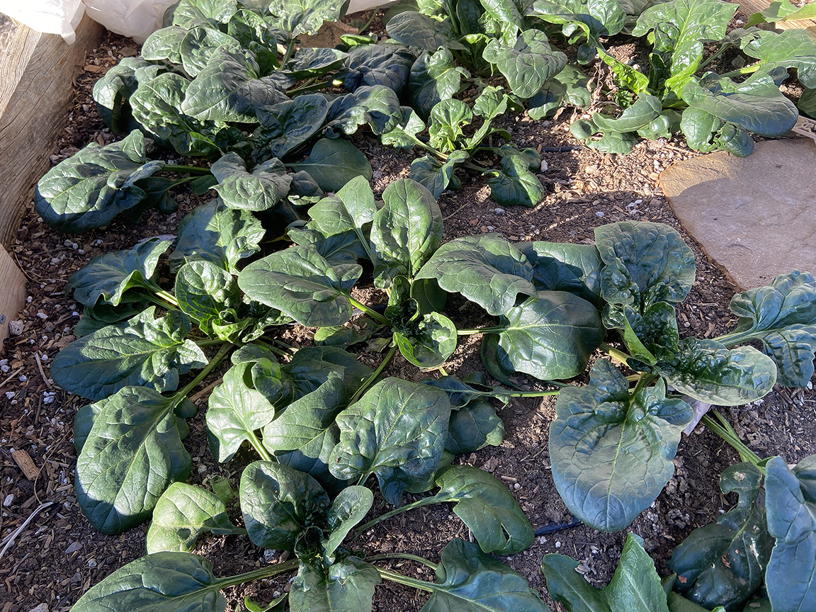 If you have a cold frame with a lid or plastic tunnel over a raised bed, you could do the same as in the top photo with spinach in it. I have one cold frame that I use in this way in the spring as well. It isn’t dug into the ground (like in the diagram above-not in my ground-too hard!)) but sits on top of the soil so I put some straw bales around the sides to add some insulation to it.