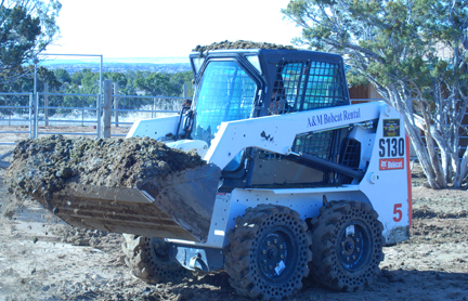 I rented a Bobcat yesterday to regrade the driveway. It was bad. Really bad. How bad? Well a friend said it was like a third world road! We had 2 storms this summer with torrential rain that wiped it out. The ground was still damp from that little snow storm  and perfect for working it. Anyways I had to rent the Bobcat for a whole day. It only took about 3.5 hrs to do the driveway and then I thought hmm, what can I do with it now?! At that moment, Javier pulled up with 2 trailer loads of horse manure, so I spread it out over the pumpkin patch that I had just cleaned up the day before. How fortuitous!  Then I went out to what will be the new garden addition (say what?!) on the back of the existing main garden. I know I said I was done adding on but I’m trying to get a three-year rotation for my tomatoes. I had cactus, piles of dirt, old compost bins and a lot of junk over there just on the other side of the long gourd tower. Well I took the Bobcat and ripped out the cactus, smoothed out the area, removed the junk and cactus, and spread out the old compost inside a couple of hours. Still had some time left so I ran it over to the area I want a greenhouse and leveled it out, removed rocks and cactus and dug up old tree stumps that would have been right in the middle of it. I had to get out of the Bobcat to push  a big piece of cement and some tree stumps into the bucket and dropped a big tree stump on my big toe loading it. Not sure but it’s either broken of severely bruised. I’ll figure that out tomorrow as I am dirt tired as I say.