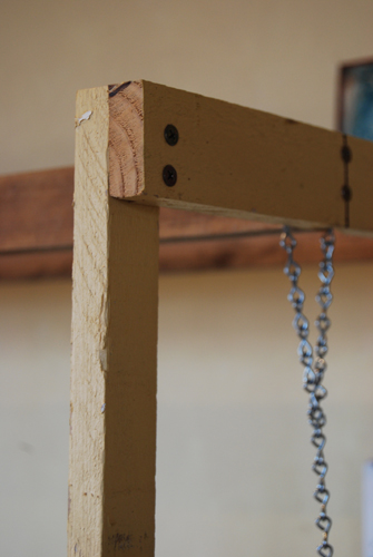 3. CROSSPIECES LENGTHWISE: To connect the top pieces for stability and to also hang the lights, I attach (2) 2″ x 2″ x 4′ across the width.