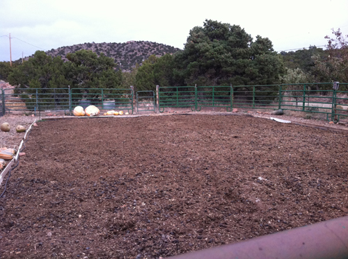 So yesterday I rented a giant rototiller (16 hp) and plowed in the 4 yards of manure, 50 lbs dried molasses (it smells so sweet), 50 lbs mushroom compost (are we cooking here?), and 50 lbs of gypsum (for calcium-makes strong bones, I mean strong plants!) in the pumpkin patch.
