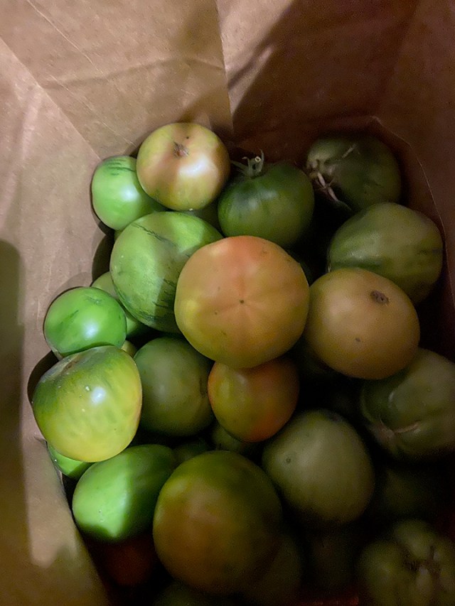 I had 6 bags of green tomatoes that ripened inside. Pretty good having homegrown tomatoes through end of November. Bittersweet in that I am glad the season is over but sad there will be no more wonderful tomatoes till next July.