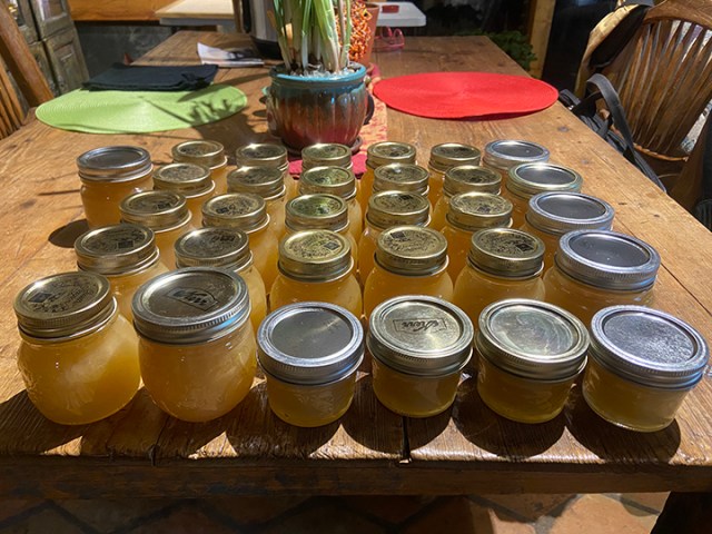 The apple trees did produce a lot but dropped most of them-I suspect due to the drought. But Koko the horse and the goatie things in the barn were grateful and loved all of them!