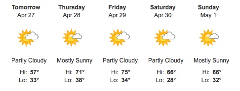 Here we go-Cold weather AT NIGHT again. Today the weather is cold high 56°F and low 25°F, already snowing a little bit. It’s ok , we desperately need the moisture. Unfortunately we are also going to get high winds-up to 70 mph! Above is the forecast for the next 5 days.