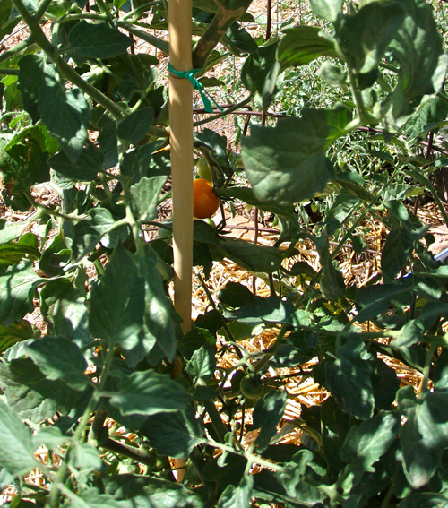 I should have a plethora of cherry tomatoes this year-Sungold, Black Cherry and Green Grape and a mystery red that was suppose to be a San Marzano! Here is a closeup of Sungold. Hope the birds don’t get it! All the cherry tomatoes should start producing soon!