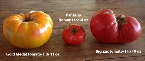 Here are the two biggest tomatoes so far this season. The yellow one on the left is 1 lb 11 oz Gold Medal and the red one on the far right is a 1 lb 10 oz Big Zac. I got second place at the State Fair with a little smaller Big Zac tomato but if I had found this Gold Medal I would have had first. It’s ok though as I took 5 first places, 1 second place and 1 third place at the State Fair. Can’t be too greedy.