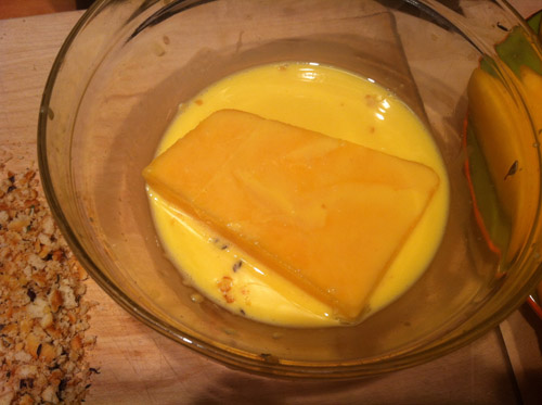 Take the steaks and dip them into the egg mix.