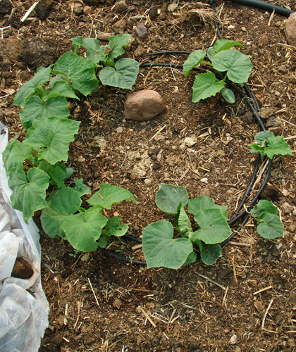 I’m also growing ‘Tahume’ Calabacitas squash which is really a winter squash picked very immature-we eat it like summer squash out here in Santa Fe especially in the dish called Calabacitas, which is a mixture of sauteed onions, corn, Hatch green chili and calabacitas squash. I got this from Botanical Gardens seed company. Very yummy!