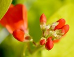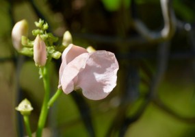 Sunset Runner bean: I grew this for the beautiful peach colored flower. The leaves are the normal green of other runner beans. I grew it on my arbor at the entrance to the garden.