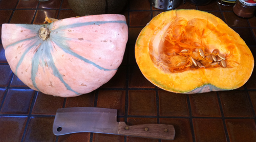 SQUASH-I grew a yellow, bumpy summer squash called Friulana-looks kind of yellow green in this photo and Butternut winter squash-both did well. YES for next year.