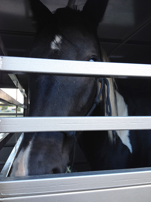 It was challenging to say the least to load her in the horse trailer as she wasn’t use to getting in a horse trailer and was totally trailer shy. It took us over 3 hours to get her in it. I tried a few times-no luck. Nick tried the second time-no luck. Nick tried a few more times but still no luck. After that her owner, Steve tried multiple times-no way!