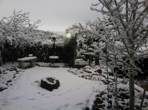 -I need to expand the wells around the trees a little, put some Yum-Yum mix fertilizer around them, sprinkle either Planters II mix or Azomite for minerals on top of soil and scratched in . Then innoculate soil with some mycorrhizal. Pound holes into ground to root area and put mycorrhizal in holes-then water well. Add 2-4 inches of mulch on top of soil keeping it 3″ away from the base of the trunk (if you smother the tree trunk with dirt up to the trunk, it will die).