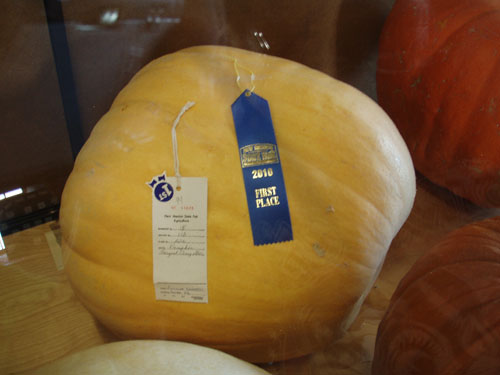 I went to the 2010 New Mexico State Fair yesterday and won first place for my littlest giant pumpkin and first and second place for my marrows (zucchinis). It was fun seeing all the different veggies on display and which ones won. Next stop-Great Pumpkin Commonwealth (GPC) Weigh-Off in Colorado Springs, CO with my biggest pumpkin and marrow on October 2.