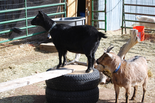 I don’t know where I got this farming thing cause I grew up in a city but I really love having a mini farm or as I say a ‘artisan farm’ on the edge of town. Four years of attrition, losing 8 animals (all but 2 were geriatric—1 horse (colic), 3 dogs (old age), 2 goats (old age) and 1 cat (old age) and 1 more goat (bloat) is sad enough. Two new baby goaties have been added to the barn. They are about 1-year-old bringing our total to 4 goats. It feels good to build up the farm again. Nothing worse than an half-empty barn.