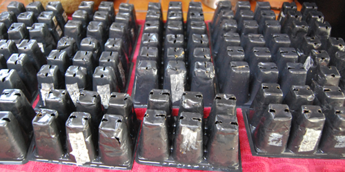 Last evening I planted my tomato seeds-both heirloom and hybrid seeds. I brought out and set up the light boxes and heating mats last week. Before planting my seeds, I always clean the little pots with some bleach water that I use for starting tomato seedlings. It’s important to disinfect the pots because you don’t want your plants to pick up any soil borne diseases. I use about a 10%  bleach to water ratio.  I use the kitchen sink and try to not get dirt everywhere from the used pots. The trick is to convince your partner that it is ok! Just tell them you are disinfecting the sinks out (which is true)! I picked up the seed starting soil-Metro mix 300 from Agua Fria Nursery last week. It comes in a big bag but you will be planting up into larger containers in a few days after the second set of true leaves appear and besides if you have any left over, you can use it for next year. I’ve bought many seed starting soil mixes (usually at the big box stores) and hate the way the water rolls off of the soil when you first go to use it. With this soil mix (Metro Mix 300) I just plant the tomato seeds about 1/4 inch deep and water it all at once. It saves time and anything that saves time I like!