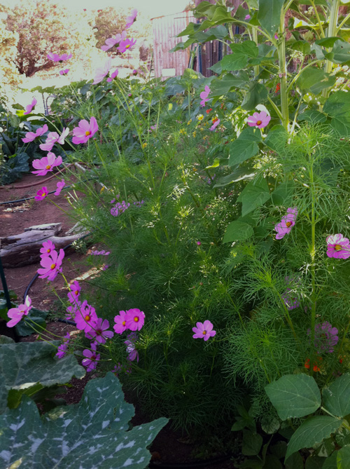 Inside the entry are some other sunflowers-Hopi sunflowers, and Chianti sunflowers. We also have wild sunflowers that grow here in NM, they just haven’t found my garden yet.