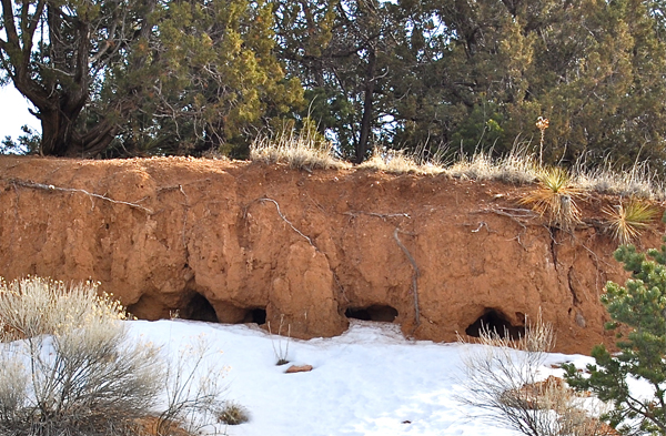I found these coyote dens on the side of a bluff but decided not to get closer. Check out the footprints around them. No wonder we hear them at night-they are so close! Glad my goaties and chickens are well protected…