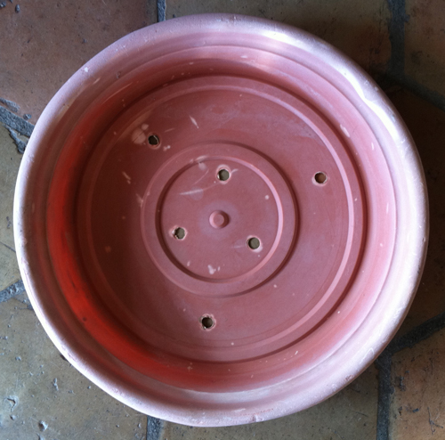 ‘Mesclun’ is a term that means a ‘mixture of young salad greens’ in French. Last year I created a lettuce/mesclun bowl inside the house while it was still cold outside. I took the bottom from one of my pots (you know so that your pots don’t leak all over when you water), cleaned it with a bleach solution and drilled some holes in the bottom of it so water can drain out.
