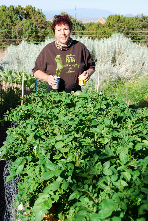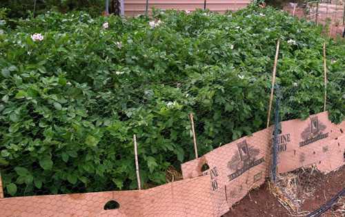 This year, I’m growing them in ‘potato bags’ instead of a garden bed. My friend, Janet had fabulous luck with them last year-in fact she got more than I did in a raised bed so I’m trying her way this year besides it opens up another bed for me to grow other veggies in.