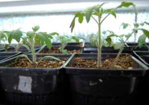 So many have asked, “Am I’m going to plant my tomatoes in the ground soon?” The answer is not too soon. I just transplanted all my tomatoes into 2″ pots and they need to get bigger! (Look Linda and Lava, how big they are already!) All you who ordered your tomatoes will get them, don’t worry. When? As soon as they are ready.