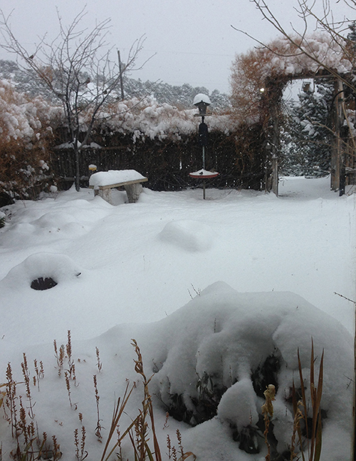 Last week we got 7-8 inches the first day and more in the following 2 days that measured 12 inches total. This was great moisture for all our trees and perennial plants that so desperately need moisture in our dry winter. Plus it gave me time off from hand watering. I water in the winter about one time a month with a hose to keep plants/trees going thru the winter or if we are lucky enough to get snow, I get some time off! 12 inches of snow equals about 1″ of moisture.